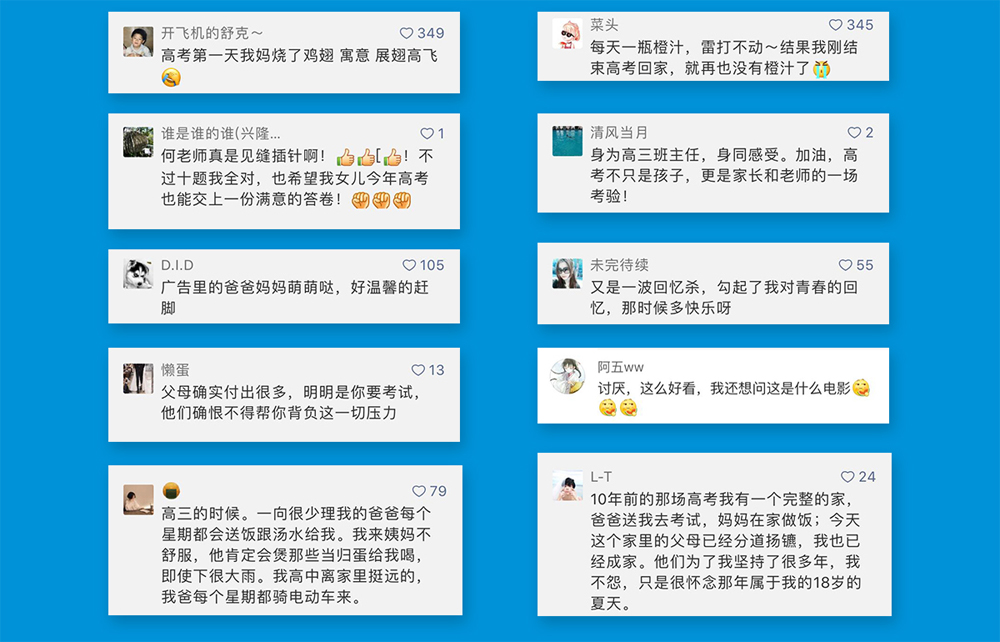 影片配合双微自媒体多角度传播,收获上万条关于高考及父母的走心评论。